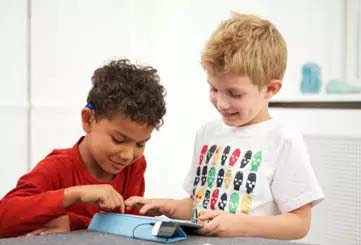 佩戴助听器后,立即停止原来的活动,并新奇地聆听 |